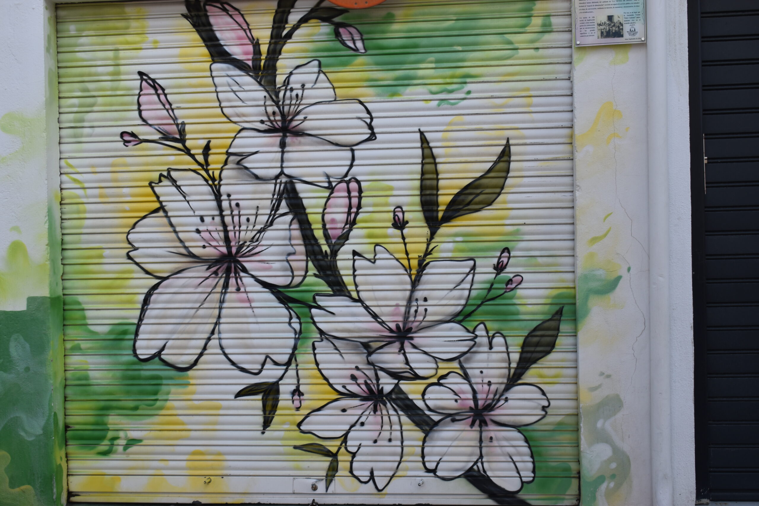 Este mural nos muestra el elemento característico del barrio, el almendro, cuyo color lo llena de belleza durante la primavera.