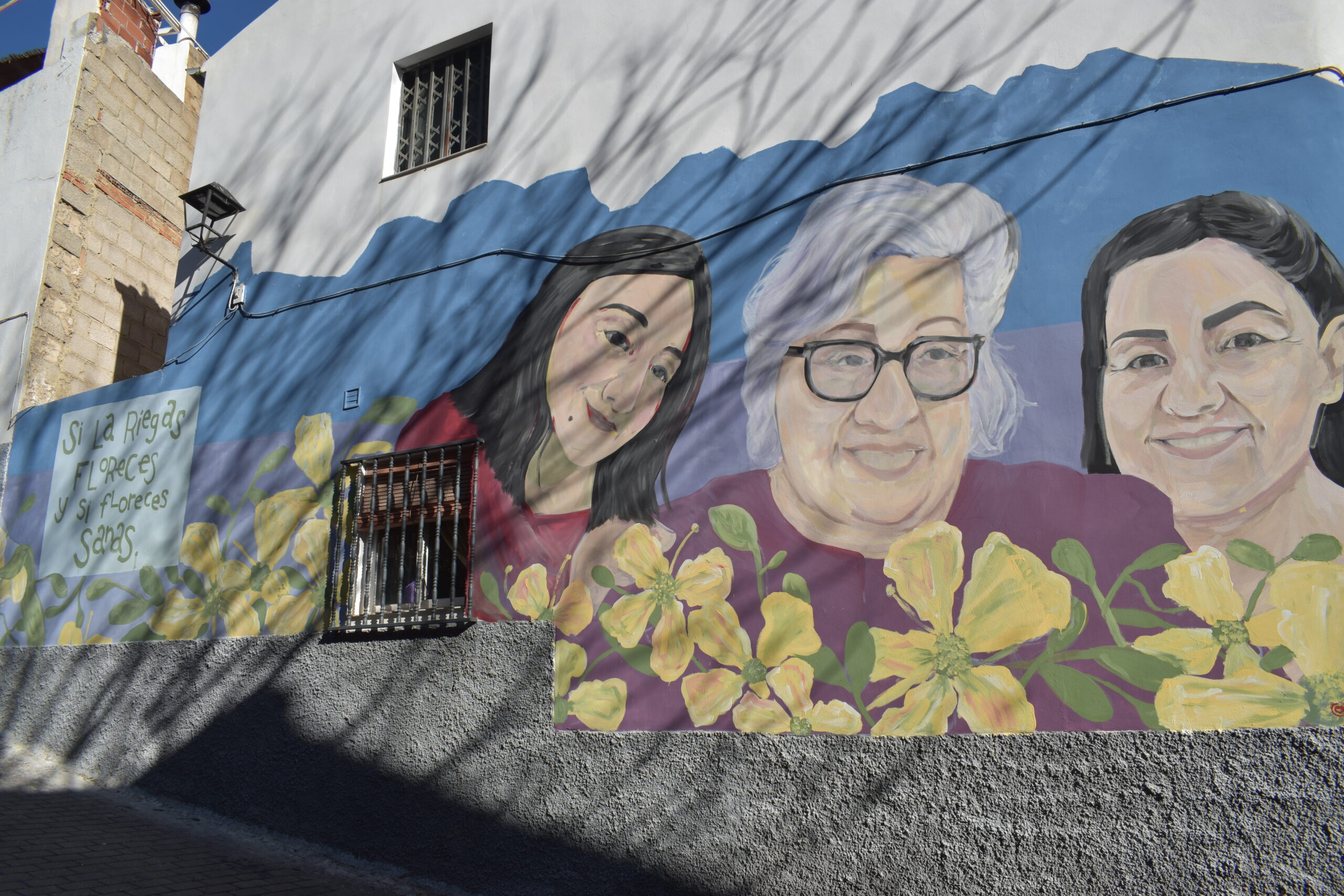 El mural se centra en tres retratos de mujeres que parecen estar relacionadas familiarmente (madre, hija y abuela), todas mirando hacia el espectador con una sonrisa,ellas personalizan la fuerza y la belleza que resulta de regarse a uno mismo.