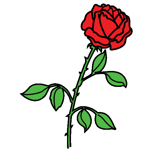 La rosa está rodeada por un fondo de colores pastel y aguadas (lila, verde claro, amarillo pálido) que dan un efecto de desenfoque y ligereza. Debajo de la flor, se extienden varias hojas verdes con sombras profundas y un tallo.